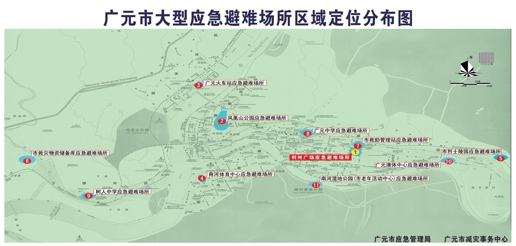 “在一般人眼里,利州区广场只是休闲游玩地,其实它还是一个应急避难场所。”广元市减灾事务中心主任文树声表示,广元市城区市本级共有11个应急避难场所,利州区广场为其中一个。它是应对突发公共事件的一项安置措施,是用于受灾群众躲避火灾、爆炸、地震、洪涝、疫情、战争等自然灾害或突发事件提供临时应急避难的场所。