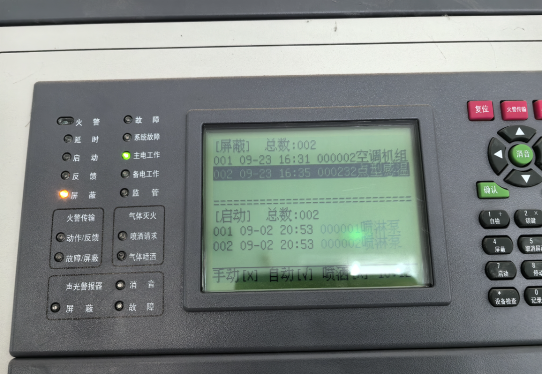 1.办公楼火灾报警控制器显示002处屏蔽信息