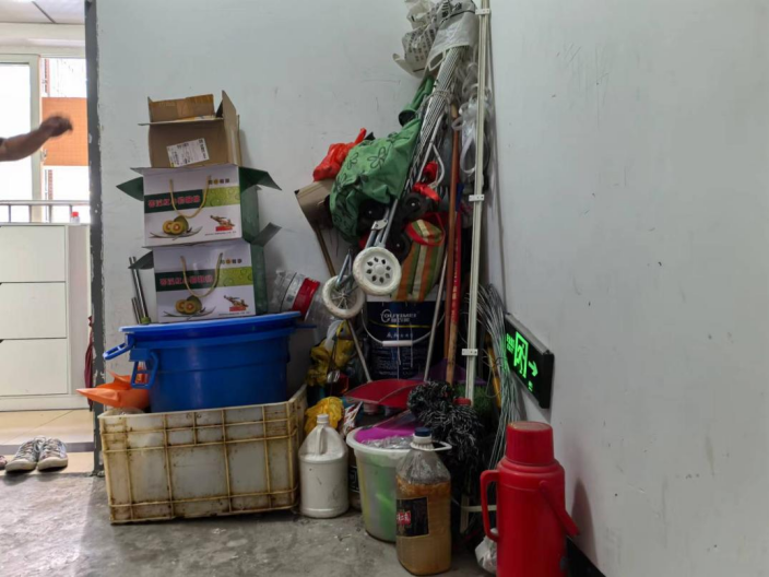 1.第二安全出口未设置安全出口标志,且被杂物堵塞