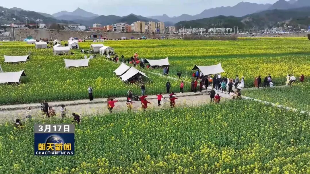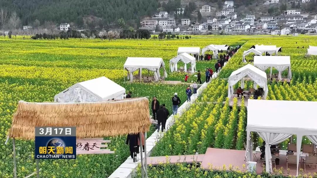 这两天我们这儿的油菜花开了,来参观的人也多,我在家里带娃,平时没事,就把家里的玉米、煎的饼子来卖,还有土特产,卖的也不错,大家都很喜欢,欢迎更多的人到我们这里来参观。