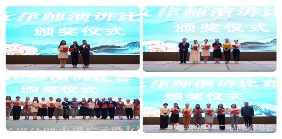 现场嘉宾们为荣获一等奖、二等奖、三等奖、优秀奖的女律师们进行颁奖。