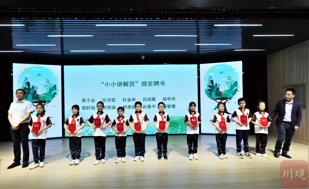 前期经过学校选拔、实地培训,袁千会、任书宜等10位同学被评为“小小讲解员”。活动启动仪式上,市教育局党组成员、副局长赵崇杰,市八二一中学副校长刘和文为他们颁发了“小小讲解员”聘书。