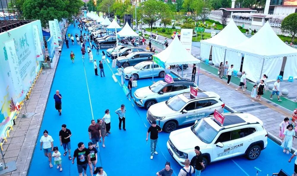 “醉美广元·嗨啤一夏”主会场新能源汽车展区。