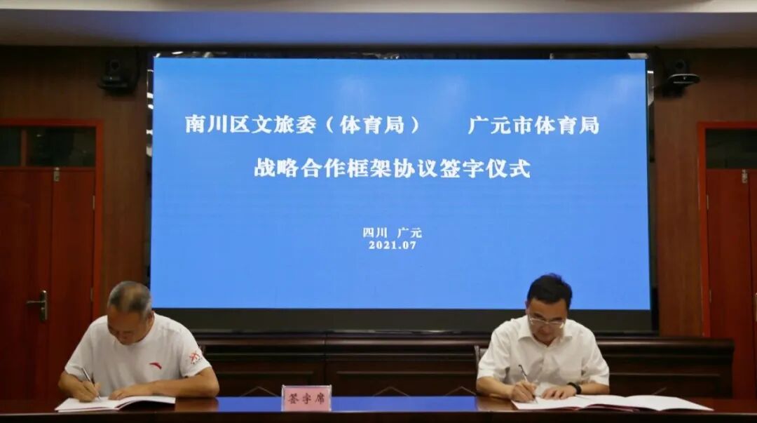 7月17日下午,广元市体育局与重庆市渝北区、南川区签署战略合作框架协议。