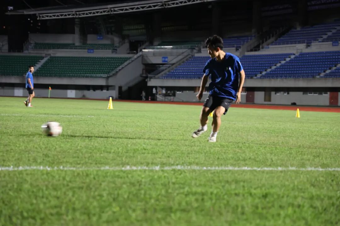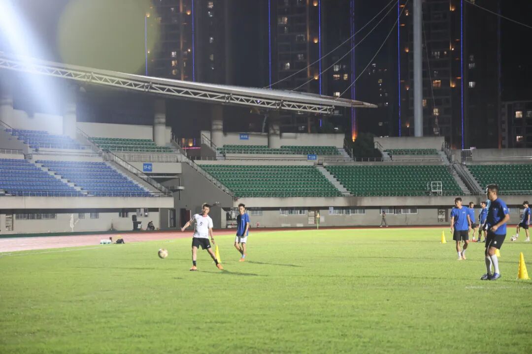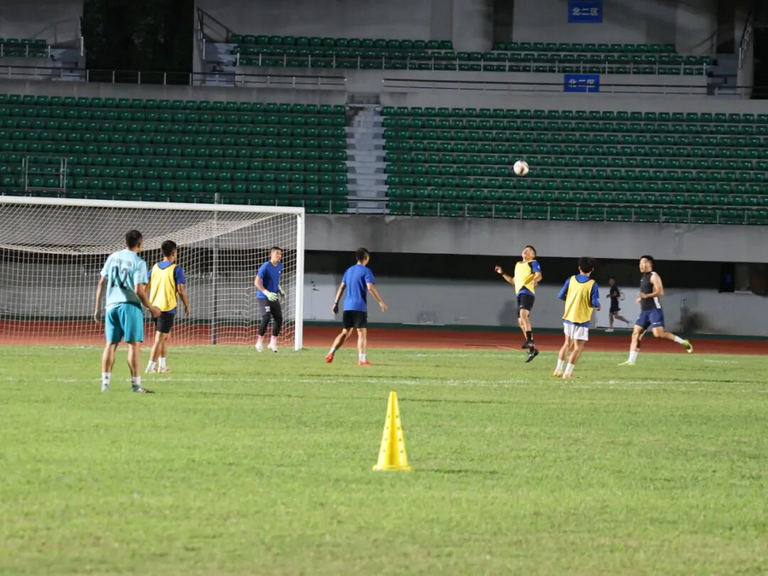 头球、点球、盘带过桩……自8月20日以来,夜晚的球场便被激烈而又充满节奏的训练声填满。众多球员星罗棋布分散在不同区域,有的成组进行传接配合,有的则跨越半场尝试远射,这些来自不同职业,不同年龄的身影默契十足。呐喊声、呼应声、踢球声,和着秋夜的微风回荡在球场上方,仿佛连空气都被这份专注与热血点燃。
