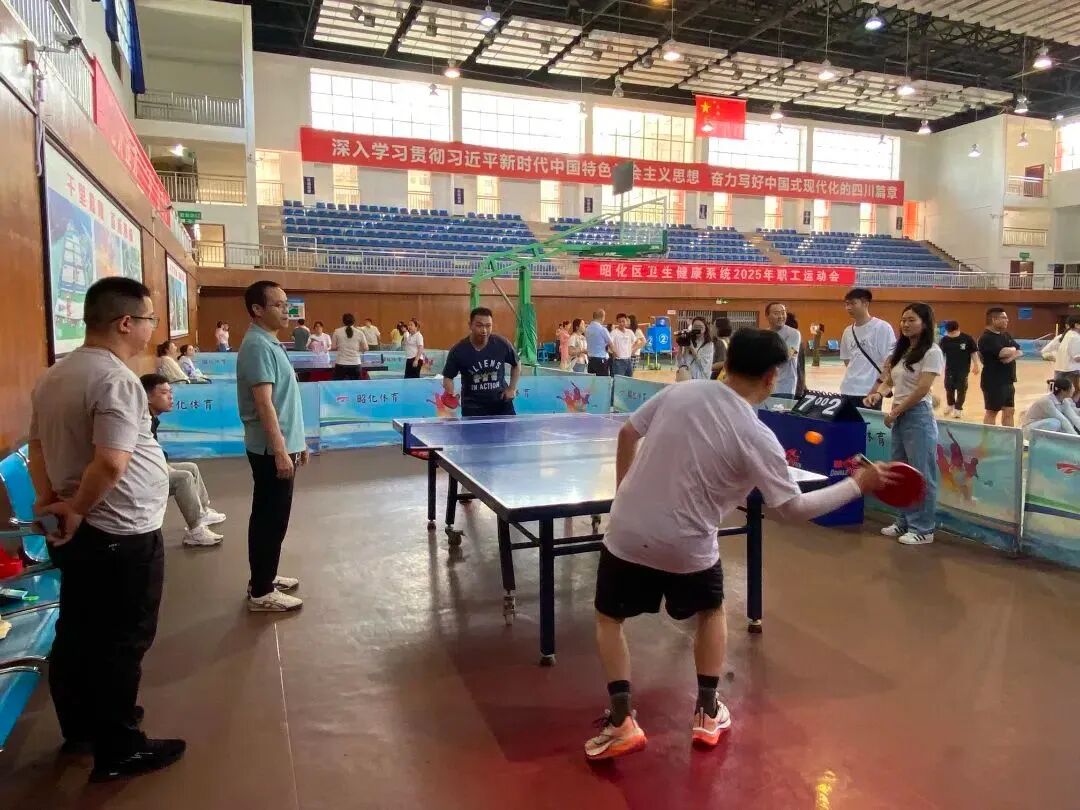 启动仪式后,400余名健走达人,精神抖擞,有序出发。大家边走边欣赏沿途风景,呼吸新鲜空气,在自然景观中绘就了一幅活力四射的美好画卷,展现了昭化区广大干部职工健康向上的精神风貌。健走归来,区澳援文体中心内瞬间变身活力战场,羽毛球场上,选手腾跃扣杀,白羽如箭翻飞;乒乓球桌前,小球疾旋穿梭,攻防瞬息万变。欢呼声与球拍击打声交织共鸣,参赛者以球会友,将现场氛围燃至沸点。
