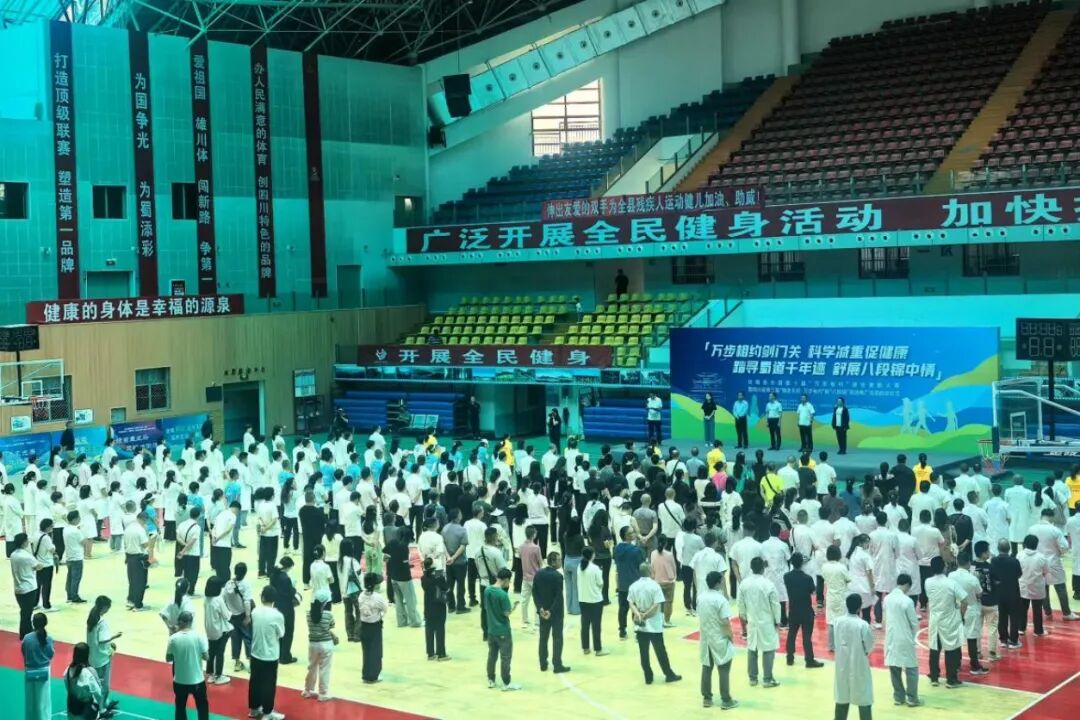 5月9日,全国第十届“万步有约”健走激励大赛、四川省第三届“健走天府·万步有约”剑阁赛点启动仪式暨八段锦推广活动在剑阁县体育馆举行。300余名干部群众齐聚一堂,共同见证这场融合全民健身与传统文化的健康盛宴。