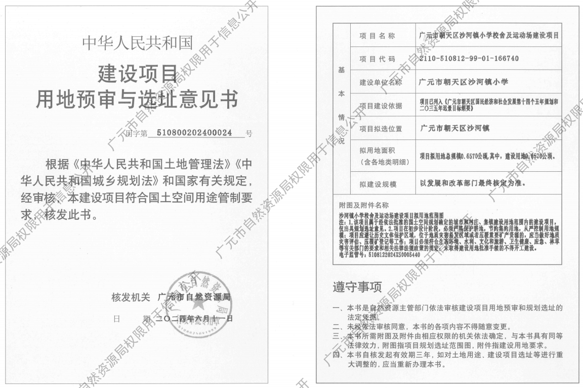 广元市朝天区沙河镇小学校舍及运动场建设项目