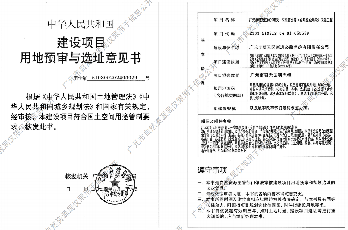 广元市朝天区 X039 朝天—安乐河公路(金堆至金场段)改扩建工程